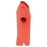 100% polyester. Col en bord-côte. Patte 3 boutons. Bande de propreté encolure et fentes côté contrastées. Finition double aiguille bas de manches et de vêtement.